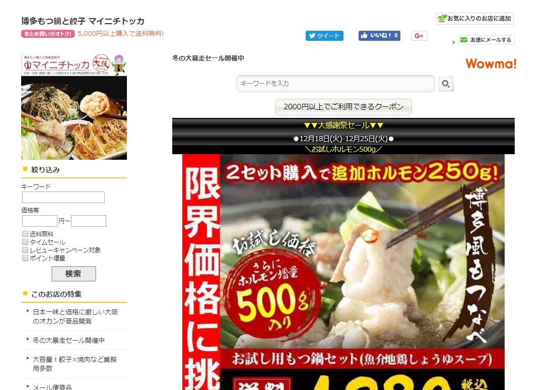 博多もつ鍋と餃子 マイニチトッカYahoo!ショッピング店OPEN